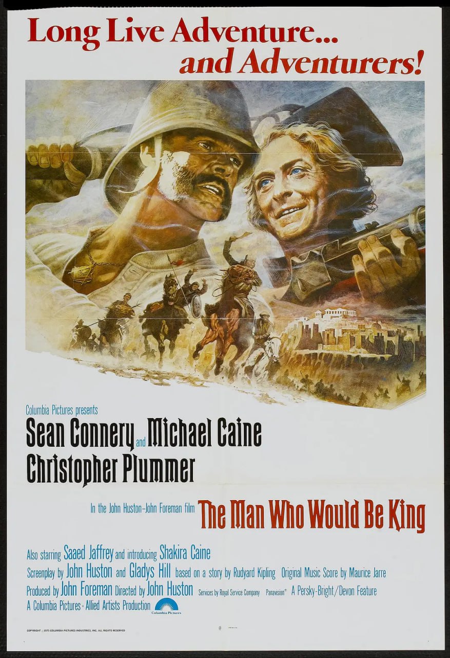 故事发生在十九世纪的南亚次大陆,丹尼(肖恩·康纳利 Sean Connery 饰)和比利(迈克尔·凯恩 Michael Caine 饰)在服完兵役后并没有急着返回祖国。他们发现了一个古老的王国卡菲尔斯坦,其中居住着的都是未开化的土著。丹尼和比利有信心利用他们的聪明才智和先进技术让这群野人们相信他们生来就是统治部落的国王。起初,事情并不如两人想象的那么简单,但一连串的意外让土著们渐渐开始相信看似刀枪不入的丹尼是他们的国度命中注定的统治者和神,就这样,丹尼顺利的坐上了国王的宝座,享受着他的子民们对他的爱戴和敬仰。得意忘形的丹尼打算迎娶当地的一名美女,没想到这一举动却令他遭遇了信任危机。